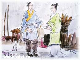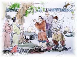 正在煩惱時(shí),忽然見到一位年輕的女子正在痛罵責(zé)打一位年邁的婦人,便趕忙上前勸阻,并指責(zé)那年輕女子大逆不道行為。