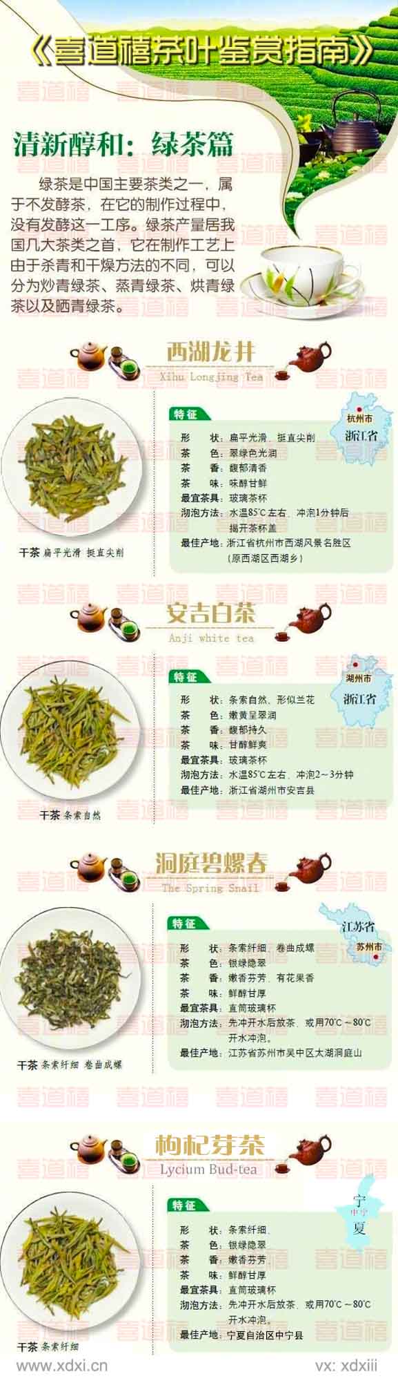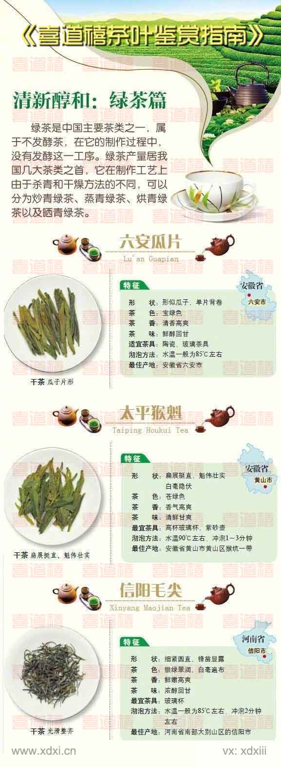 綠茶就工藝劃分,按其干燥和殺青方法的不同,一般分為曬青、炒青、烘青和蒸青綠茶。其口感和湯色各不相同,其中的韻味及回味妙不可言,作為中國人能遍嘗98種綠茶是人生的閱歷和福氣。
