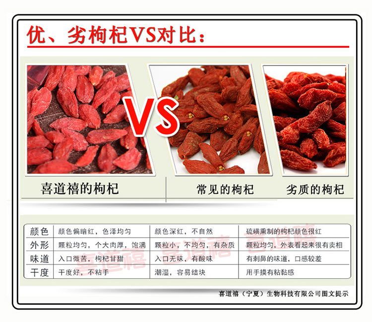 (備注:該對比圖只是好枸杞與一種劣質(zhì)貨的對比情況,全國市場中,劣質(zhì)枸杞的表現(xiàn)形態(tài)還有好多種賣相。)