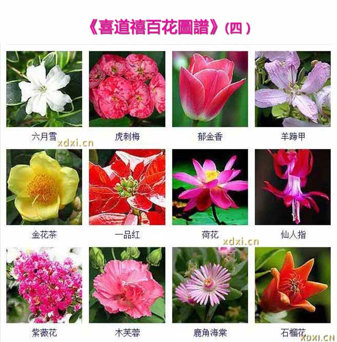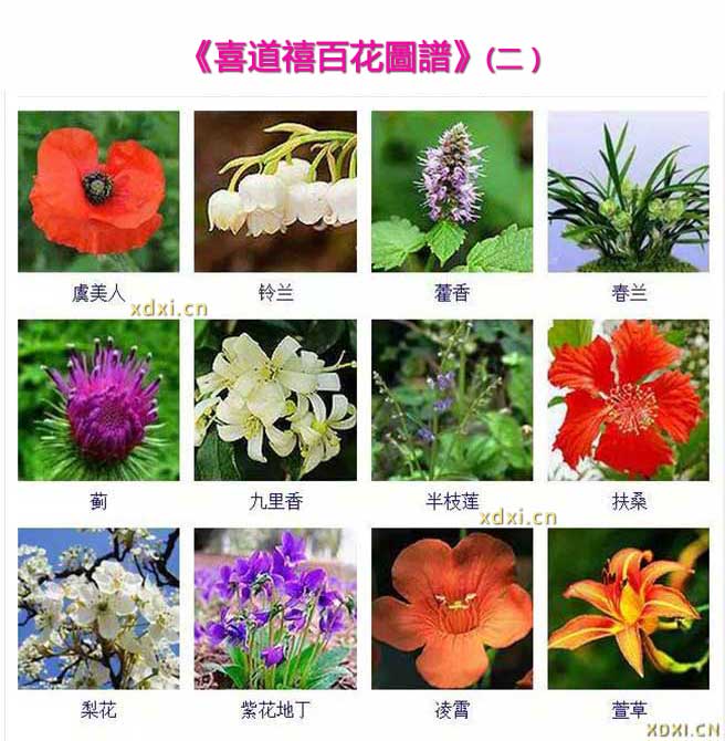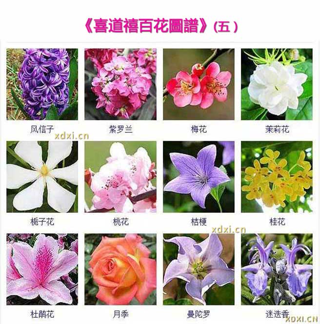 花友 (對各種花的雅稱) 、十二客 (對十二種名花的謔稱) 、玉英 (花的美稱) 、玉玲瓏 (花的別名) 、 瑤芳 (白色花朵的美稱)、 瓊苞 (花苞的美稱) 、玉葉 (花木葉子的美稱) 、木芍藥 (牡丹的別名)、 百兩金 (牡丹的別名)、 伊洛傳芳 (牡丹的別稱) 、花后 (牡丹的別名) 、貴客 (牡丹的別名)、 洛陽花 (牡丹的別稱) 、鹿韭 (牡丹的別名)、 雄紅 (牡丹的別名) 、賞客 (牡丹的別名) 、鼠姑 (牡丹的別名)、 醒酒花 (牡丹花的別名)、 京花 (千葉牡丹的別名) 、九英梅 (蠟梅的別名) 、久客 (臘梅的別名) 、小黃香 (蠟梅的別名)、 奇友 (蠟梅的別稱)、 黃梅花 (蠟梅的別名) 、寒客 (臘梅的異名) 、狂客 (楊花的別稱)、 一捻紅 (山茶花的別名) 、月丹 (山茶的別名)、 玉茗 (白山茶花的別稱)、 豐瑞花 (瑞圣花的別名) 、閨客 (瑞香花的別名) 、紫風流 (麝囊花的別名)、 蓬萊紫 (瑞香花的別名) 、錦熏籠 (瑞香花的別名)、麝囊 (瑞香花的別名) 、僭客 (春花的別名) 、 百結花 (丁香的別名) 、素客 (丁香花的別名)、 情客 (丁香的別名) 、女郎花 (辛夷的別名)、 書客 (木筆花的名) 、新夷 (木蘭的別名)、 山石榴 (亦省稱“山榴”,杜鵑花的別稱)、 山客 (躑躅的雅稱) 、山躑躅 (杜鵑花的別名)、 紅躑躅 (紅杜鵑花的別稱)、 映山紅 (杜鵑花的別名)、 謝豹花 ( 杜鵑花的別名)、 躑 (杜鵑花的別名)、 躑躅 (杜鵑花的別名) 、拘那夷 (亦稱“拘兒”,夾竹桃的別名)、 俱那衛 (夾竹桃的別名)也叫俱那異、枸那花 、川紅 (海棠的別名) 、名友 (海棠的別名) 、蜀客 (海棠的別名)、 蜀錦 (海棠的別稱)、 醉美人 (垂絲海棠的別稱) 、雪 (繡球花的別名) 、內消 (紫荊的別名)、 蚍蜉 (紫荊的別名) 、七里香 (山礬的別名)、 幽客 (山礬的別名)、 米囊 (花的別名)、 照殿紅 (佛桑花的別名)、 馬塍 (合歡的別名)、 馬纓花 (合歡樹的別稱)、 青囊 (合歡的別稱) 夜合 (合歡的別名)、 鸚哥花 (刺桐花的別名) 、木丹 (梔子的別名)、 林蘭 (梔子的別名) 、越桃 (梔子的別名) 、禪客 (梔子的別稱)、 鮮支 (梔子的別名)、石醋醋 (石榴的異名)、 村客 (對石榴的戲稱) 、百日紅 (紫薇的別名)、 怕癢樹 (又名百日紅,紫薇花的別名) 、官樣花 (紫薇花的異名) 、猴郎達樹 (亦稱“猴刺脫”,紫薇的別名)、 滿堂紅 (紫薇的別名) 、王蒸 (木槿的別名) 、日及 (木槿的別名) 、時客 (木槿的別稱)、 瘧子花 (槿花的別名) 、面花 (木槿花的別名) 、愛老 (木槿的異名) 、朝開暮落花 (木槿的別名)、 朝生 (木槿的別名) 、朝華 (亦稱“朝客”,木槿的別名)、 朝 (木槿的別名)、 裹梅花 (木槿的別稱) 、藩籬草 (木槿的別稱) 、七里香 (桂花的別名)、 九里香 (木犀的別稱)、 廣寒仙 (桂花的美稱) 、木樨 (同“木犀”,桂花的別稱) 、仙客 (桂的異名) 、嚴客 (亦作“巖客”,木樨的別稱)、 巖桂 (木犀的別名)、 金粟 (桂花的別名)、 木蓮 (木芙蓉的別名) 、木蕖 (木芙蓉的別名) 拒霜 (木芙蓉的別稱)、 斷腸草 (木芙蓉的別名)、 綺帳 (芙蓉花的別名)、 醉客 (木蓮的謔稱)、 女郎花 (木蘭的別名)、 佞客 (含笑花的異名) 、 攀枝花 (木棉花的別稱) 、一枝春 (梅花的別名)、木母 (梅的別名) 、花魁 (梅的別名)、 狀元花 (梅花的別稱)、 國香 (梅的異名) 、梅兄 (對梅花的雅稱) 、梅妻 (對梅花的戲稱)、 清客 (梅的別名) 、寄春君 (梅的別稱) 、暗香疏影 (梅花的代稱) 、九疑仙人 (綠萼梅的別名) 、玉骨 (梅花枝干的美稱) 、葦綃 (李花的別稱) 、俗客 (李花的別名) 、及第花 (杏花的別名)、 瀛州玉雨 (梨花的別名)、 鬼客 (棠梨花的別稱)、 月臨花 (林檎花的別名)、 雋客 (橘花的雅稱) 、勢客 (凌霄花的別名) 、鬼目 (凌霄花的別名) 、 陵苕 (凌霄花的別名) 、紫葳 (凌霄花的別名)、 小南強 (茉莉花的別稱) 、狎客 (茉莉的別名)) 、柰花 (亦作“柰子花”,茉莉花的別名) 、萼綠君 (茉莉花的別名)、 華 (亦作“花”,茉莉花的別名)、 俗客 (棣棠花的別名) 、玉雞苗 (薔薇的別名)、 買笑 (薔薇花的別名) 、錦被堆 (薔薇花的俗名) 、刺客 (玫瑰花的別稱) 、徘徊花 (亦省稱“徘徊”,玫瑰花的別稱)、 斗雪紅 (月季花的別名) 、紫華 (月季花的別名) 、癡客 (月季花的別名) 、才客 (酴花的謔稱) 、木香 (酴花的別名) 、獨步春 (酴花的別名)、 雅客 (酴的別稱) 、韻友 (酴花的別名)、 烏朕花 (玉蕊花的別名) 、散水花 (玉蕊花的別名) 、仙客 (瓊花的異名) 、文官花 (錦帶花的別名) 、海仙 (錦帶花的別名) 、長十八 (牽牛花的別名) 、狗耳草 (牽牛花的別名) 、喇叭花 (牽牛花的別名) 、勤娘子 (牽牛花的俗稱) 、田客 (鼓子花的別名) 、豚腸草 (旋花的別名) 、筋根 (旋花的別名) 、赦肺侯 (款冬花的別稱) 、橐吾 (款冬花的別名) 、可離 (芍藥的別名)、 白犬 (芍藥的別名)、 當離 (又名將離,芍藥的別名)、 近客 (芍藥的別名) 、將離 (芍藥的別名) 、嬌客 (芍藥的別名) 、馀容 (芍藥的別名) 、離草 (芍藥的別名) 、婪尾春 (芍藥的別名) 、王者香 (蘭的別稱) 、國香 (蘭的異名)、 幽客 (蘭的別名) 、香祖 (蘭花的別稱) 、侍女 (蘭花的別名) 、媚世 (蘭花的別名) 、玉盤盂 (白芍藥的別名) 、木芍藥 (赤芍藥的別名) 、伊蘭 (賽蘭香的別稱) 、金盞銀臺 (水仙的別名) 、栗玉花 (水仙花的別稱) 、凌波仙子 (水仙花的別稱) 、雅客 (水仙的別稱) 、雅蒜 (水仙花的別名) 、鴛