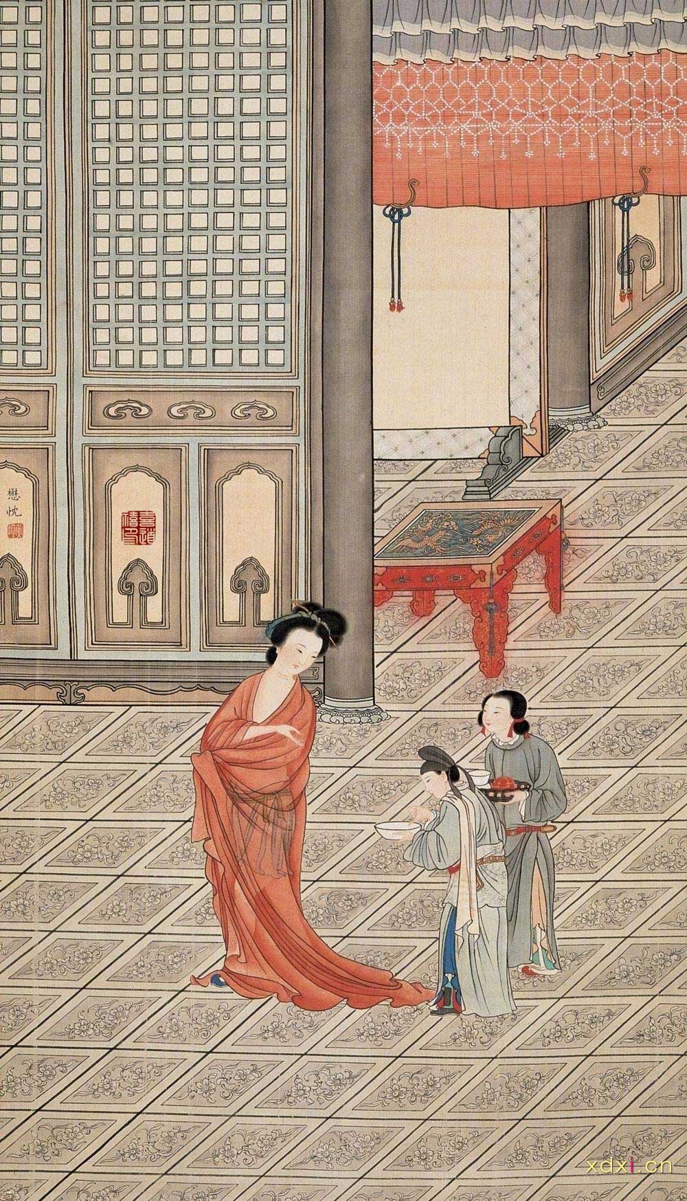 “竊慕大王之高義,命駕東來(lái),途出鄭衛(wèi),道由桑中。朝發(fā)溱洧,暮宿上宮。上宮閑館,寂寞云虛,門閣晝掩,曖若神居。臣排其戶而造其室,芳香芬烈,黼帳高張。有女獨(dú)處,婉然在床。奇葩逸麗,淑質(zhì)艷光。睹臣遷延,微笑而言曰:‘上客何國(guó)之公子!所從來(lái)無(wú)乃遠(yuǎn)乎?’遂設(shè)旨酒,進(jìn)鳴琴。臣遂撫琴,為幽蘭白雪之曲。女乃歌曰:‘獨(dú)處室兮廓無(wú)依,思佳人兮情傷悲!有美人兮來(lái)何遲,日既暮兮華色衰,敢托身兮長(zhǎng)自思。’玉釵掛臣冠,羅袖拂臣衣。時(shí)日西夕,玄陰晦冥,流風(fēng)慘冽,素雪飄零,閑房寂謐,不聞人聲。于是寢具既陳,服玩珍奇,金鉔薰香,黼帳低垂,裀褥重陳,角枕橫施。女乃馳其上服,表其褻衣。皓體呈露,弱骨豐肌。時(shí)來(lái)親臣,柔滑如脂。臣乃脈定于內(nèi),心正于懷,信誓旦旦,秉志不回。翻然高舉,與彼長(zhǎng)辭。”