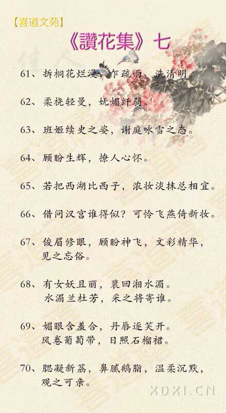 春窗曦雨,嘆茶蒔花香,宓歷飄香覽偲,囿有情愫,凝眸聆籟徜徉,彧思漣漪香婠(wan),曾幾何時,眸然回首,亭亭玉立,玉留香。有艷淑娪花月下,交情同意心和諧,豆蔻之花季;家業有成染滄桑,收獲之中年;天邊獨酌,敬相思;紅顔倚閣,望君歸。卿本佳人,愛意何?情結嬅綺麗,春墨染惇芳,細雨追花郎,花月夜。微婳霍奕,別鶩分奔暢。